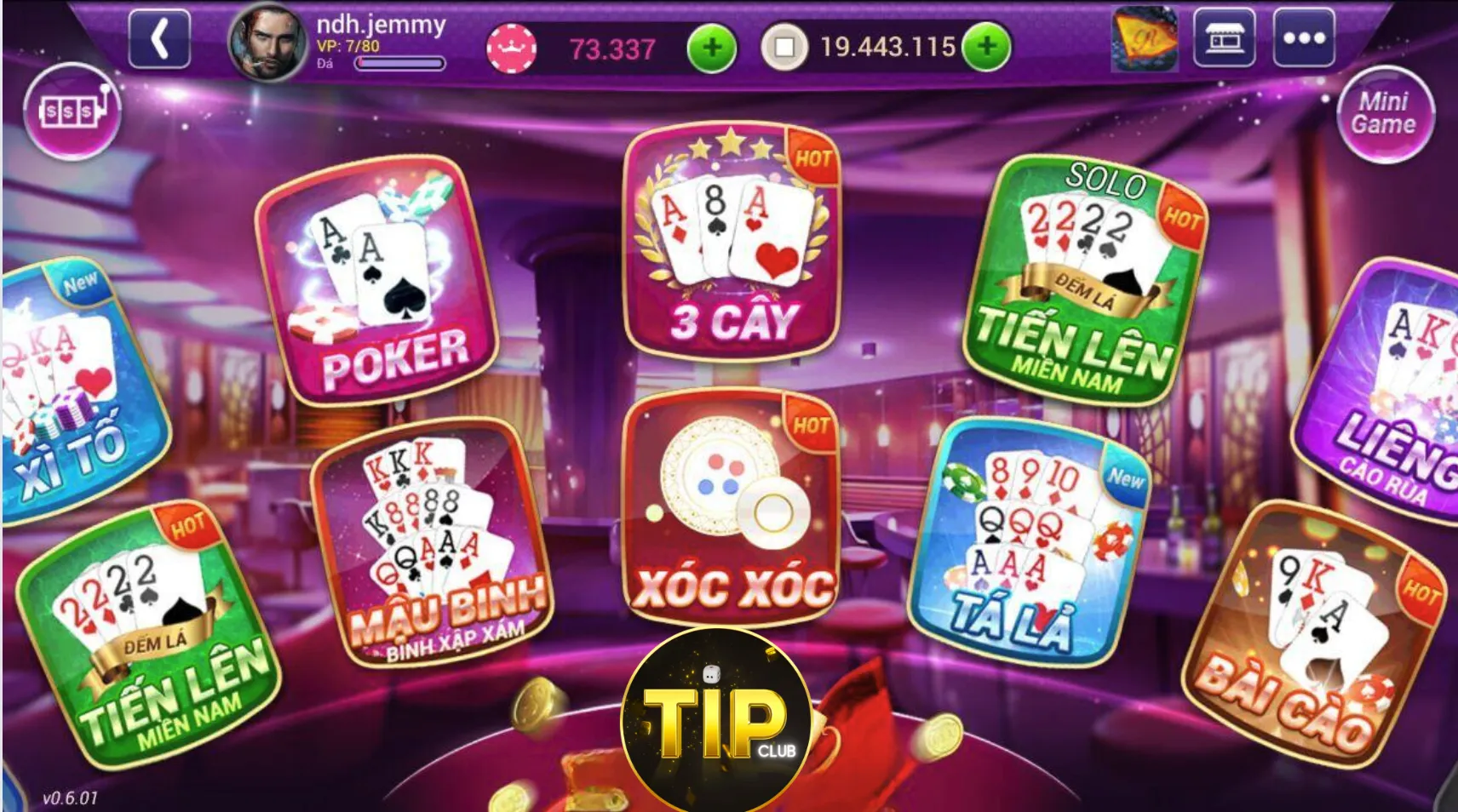 - Đa dạng trò chơi: TipClub cung cấp một kho trò chơi phong phú, từ các game bài truyền thống như Tiến Lên, Phỏm, Mậu Binh, đến những trò chơi hiện đại như Slot, Mini Game và Bắn Cá.